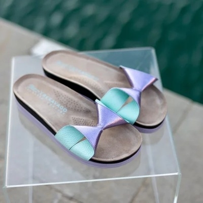 A Pretty Geisha Lavender-Mint papucs egy újragondolt modell, amely a csillogó levendula eleganciáját ötvözi a menta frissességével és a prémium kényelemmel, mindezt emelt talpon, amely modern megjelenést és extra stabilitást biztosít. A talp alsó része levendula színű, felső rétege pedig fekete, így különleges és kifinomult összhatást teremt.
