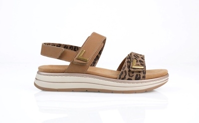 A Milena leo-mix szandál leopárdmintás velúr bőr és a barna PU fedett bőr felsőrésze igazán karakteressé és egyedivé varázsolja ezt a modellt. Rugalmas talpszerkezete és puha microfiber talpbélése gondoskodik a maximális kényelemről, míg a cserélhető talpbetét lehetőséget ad egyedi talpbetét használatára is.