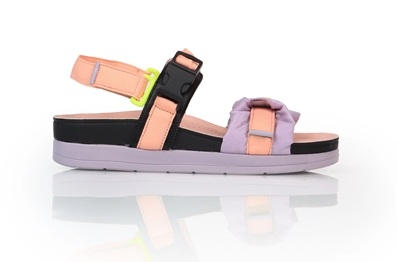 A Vágó Réka által megálmodott, már jól ismert masni most egy új, izgalmas formában tűnik fel, ezzel egy új fejezetet nyitva a kollekció történetének. A szandál barack és levendula árnyalatú felsőrésze a kontrasztos fekete és sárga részletekkel vibráló, modern megjelenést kölcsönöz, míg a platformos talp nemcsak extra kényelmet biztosít, hanem egyedivé és feltűnővé is teszi a modellt.