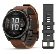 Garmin fenix 8 Pro 47mm AMOLED Sapphire karbonszürke DLC Titanium barna bőr- és fekete/szürke szilikon szíjjal