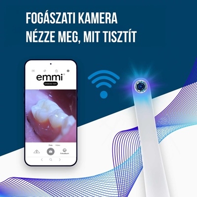 Az emmi-dent Platinum CAM forradalmi innovációt hoz a fogápolásban az integrált fogászati kamerájával. Ezzel a kamerával valós időben ellenőrizheti a szájüreget. Ha okostelefonon vagy táblagépen csatlakozik az emmi alkalmazáshoz, láthatóvá teheti a nehezen elérhető helyeket és gondoskodhat arról, hogy fogai a kívülről láthatatlan helyeken is tiszták legyen.