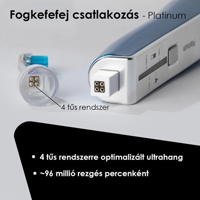 - - Az emmi®-dent Platinum cserélhető fejek talpába 4 érintkező került beépítésre az emmi®-dent Platinum nyélhez történő csatlakozáshoz. Így a rezgést létrehozó elektromos impulzusok 4 csatlatkozó között megosztva 4-szer hatékonyabb teljesítményt érnek el.